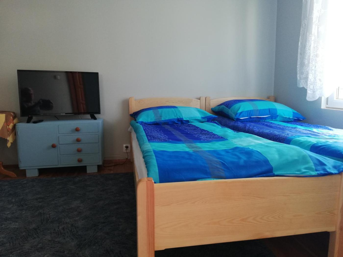 Apartament z 2 sypialniami. Featuring a private entrance, this air-conditioned apartment consists of 2 bedrooms and 1 bathroom with a walk-in shower. Guests can make meals in the kitchen that is equipped with a refrigerator, kitchenware, a microwave and an electric kettle. Boasting a terrace with garden views, this apartment also provides a wardrobe and a flat-screen TV. The unit offers 4 beds. Apartament - 5 osobowy. Powierzchnia pokoju ok.: 35 mkw. ;