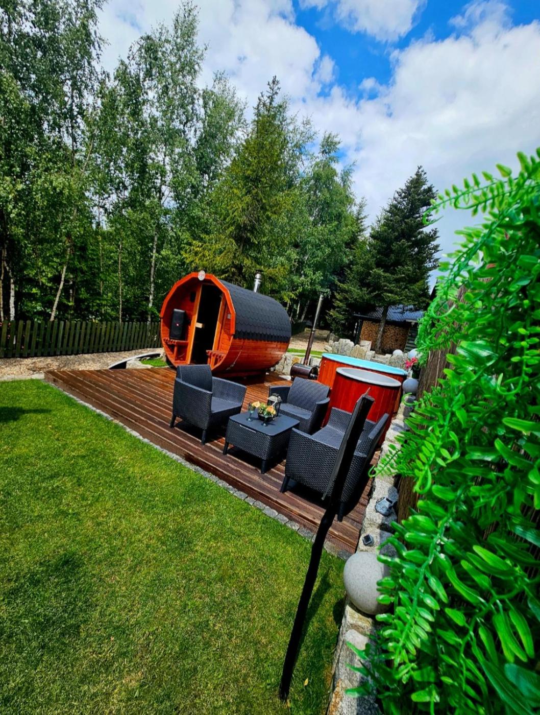 Dom z 1 sypialnią. This luxurious holiday home features a hot tub, a sauna and a fireplace. Featuring a private entrance, this holiday home consists of 1 living room, 1 separate bedroom and 1 bathroom with a shower. In the well-equipped kitchen, guests will find a stovetop, a refrigerator, kitchenware and a toaster. Boasting a terrace with garden views, this holiday home also provides a coffee machine and a flat-screen TV. The unit offers 4 beds. Dom wakacyjny - 6 osobowy. Powierzchnia pokoju ok.: 50 mkw.