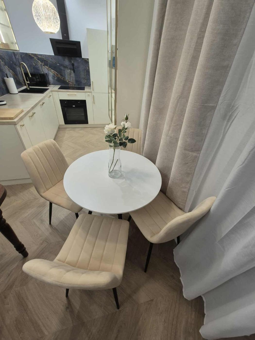 Oferta apartamentu obejmuje kilka sypialni (2), salon, kuchnię z pełnym wyposażeniem, w tym lodówką i ekspresem do kawy, a także łazienkę (1) z prysznicem oraz suszarką do włosów. W apartamencie zapewniono ręczniki i pościel.